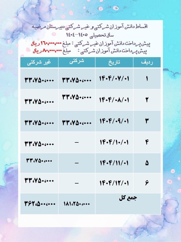 قسط بندی شهریه