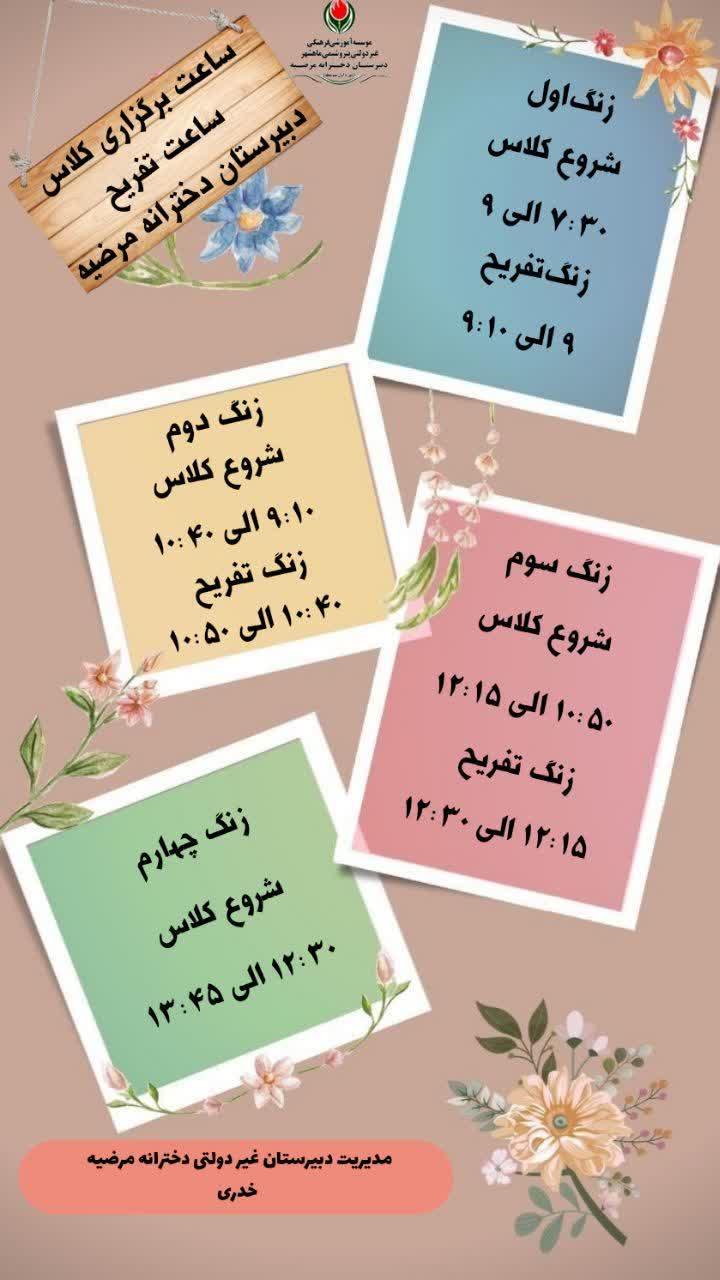 برنامه هفتگی دبیرستان مرضیه
