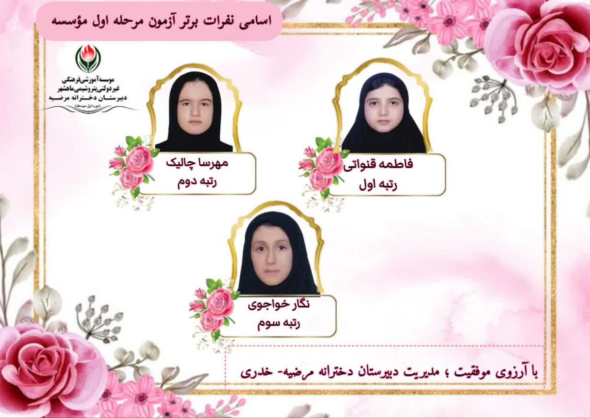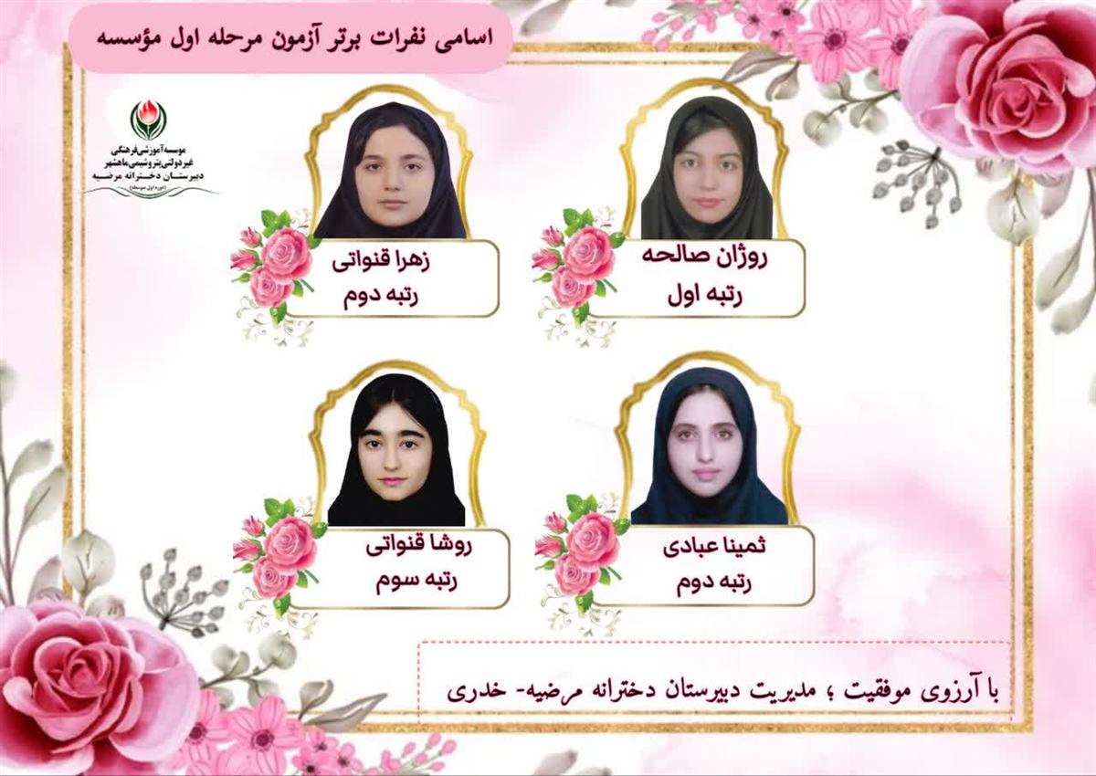درخشش دانش آموزان دبیرستان دخترانه مرضیه (س) در آزمون ورودی مدارس تیزهوشان و نمونه دولتی